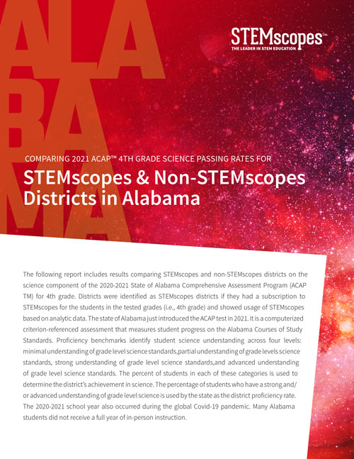 Our research and efficacy studies show that using STEMscopes results in a higher number of students who meet or exceed science proficiency benchmarks on state assessments. Having access to high-quality K-12 curriculum not only helps improve students’ science proficiency levels, but also addresses our country’s critical need for students to pursue careers in STEM. Click on the case studies to the right to see how our framework drives real-world learning, inquiry, and results.