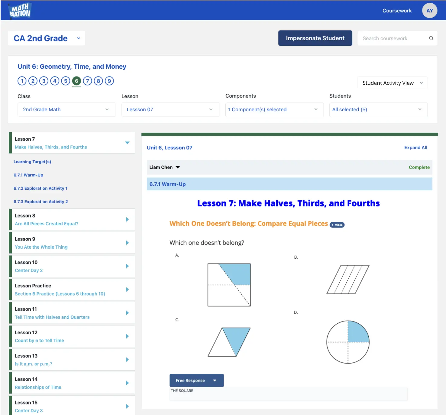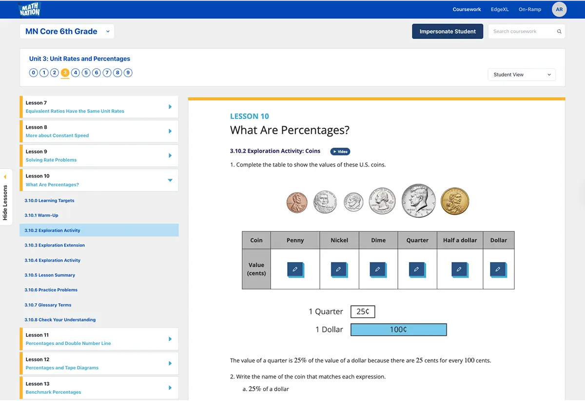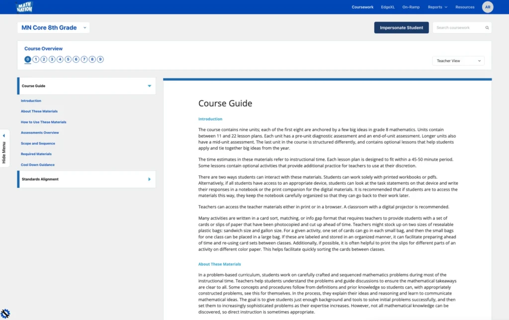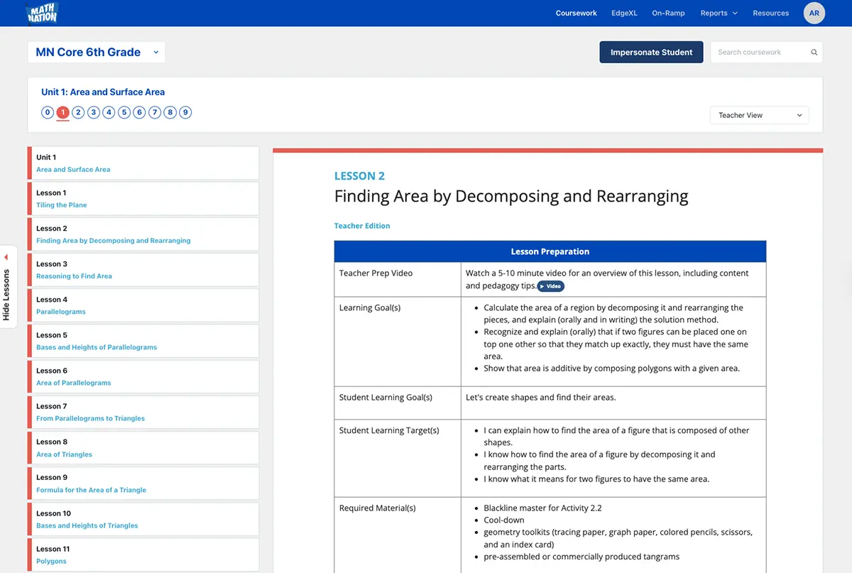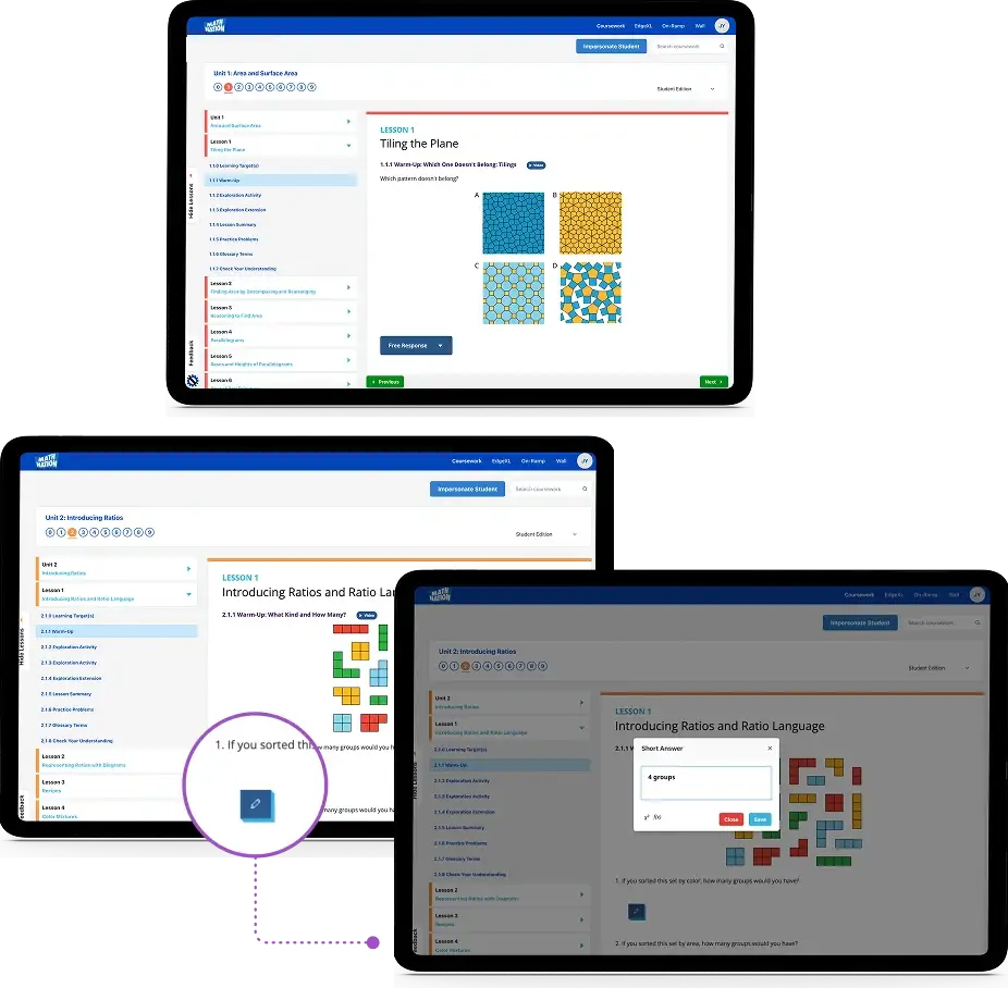 With Math Nation, assessment isn’t an add-on: it’s embedded in every step of the learning process. Each lesson includes formative checks to gauge understanding in real time, while unit-level summative tools help you track progress and identify learning gaps.