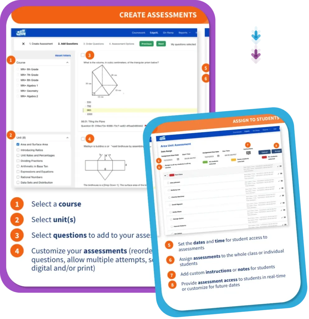 Embedded in the Math Nation platform, EdgeXL gives educators powerful tools to create, customize, and manage assessments that fit every student’s needs.