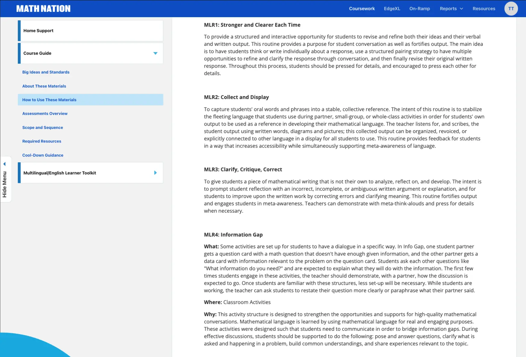 Math Nation is a fully blended math program that combines print components, digital resources, and robust resources to support teachers and their students. Each lesson includes day-to-day planning guides, implementation tools, and on-demand instructional videos, all of which are available in English and Spanish.