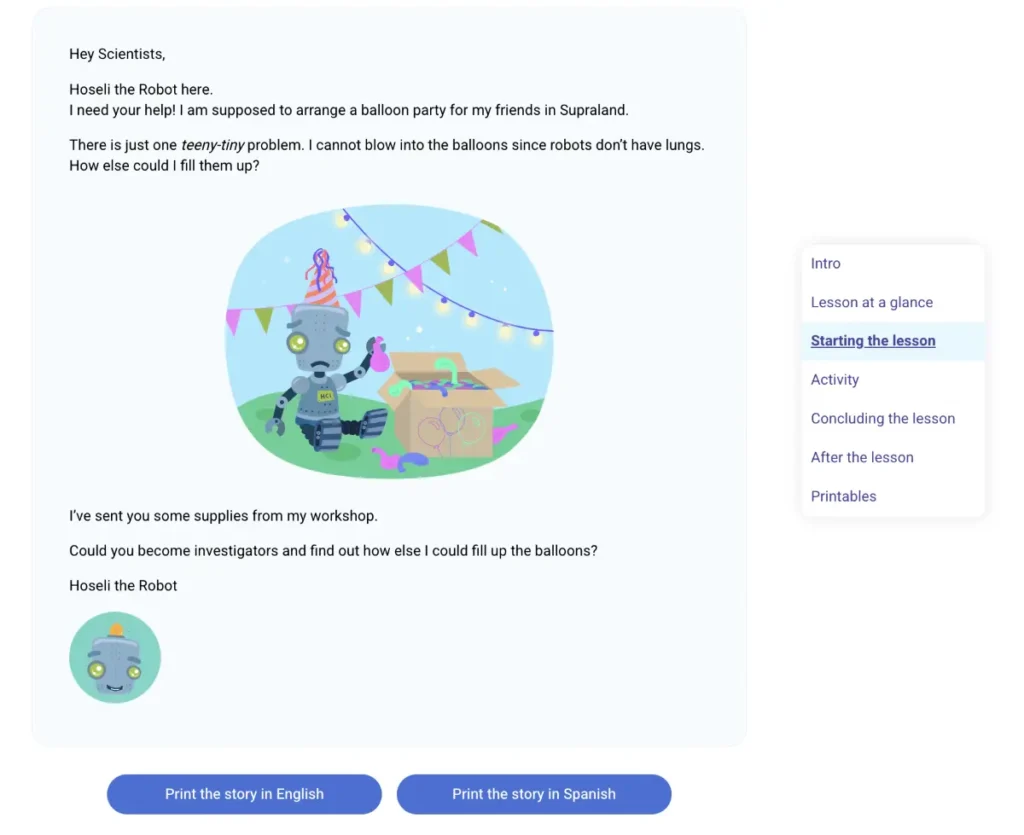 Each lesson comes packed with STEAM teaching resources and teacher training for STEAM facilitation—from demo videos to printable guides.